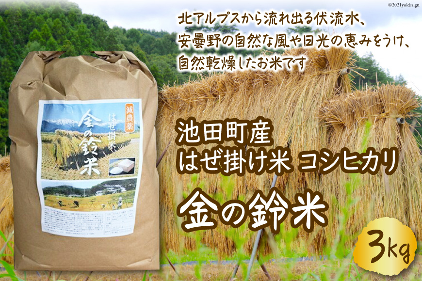 米 コシヒカリ 金の鈴米 3kg [池田町観光協会 長野県 池田町 48110430] お米 こしひかり 美味しい 池田町産 はぜ掛け米 はぜかけ米