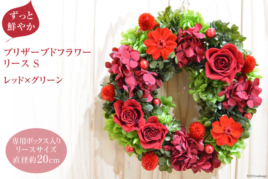 枯れない美しさで思い出を形に 【ずっと鮮やか】プリザーブドフラワー リース(S)レッド×グリーン《専用ボックス入り》 フラワーリース [mirccamircca 長野県 池田町 48110588] 花 結婚 祝い お祝い 長持ち 長期保存