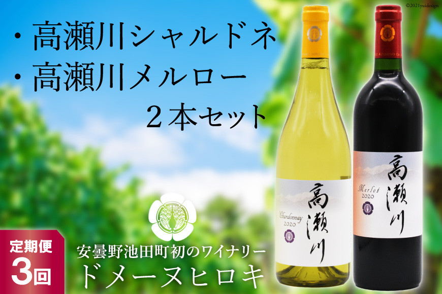 【ドメーヌヒロキセレクト】きらめく薄い麦わら色。少し濃いめのルビー色。 【3回 定期便 】白 赤 ワインセット 高瀬川シャルドネと高瀬川メルロー 各750ml [ヴィニョブル安曇野 DOMAINE HIROKI 長野県 池田町 48110164] ワイン セット 白ワイン 赤ワイン