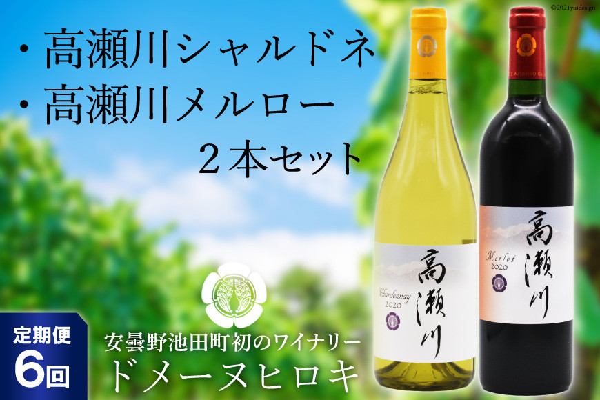 【ドメーヌヒロキセレクト】きらめく薄い麦わら色。少し濃いめのルビー色。 【6回 定期便 】白 赤 ワインセット 高瀬川シャルドネと高瀬川メルロー 各750ml [ヴィニョブル安曇野 DOMAINE HIROKI 長野県 池田町 48110179] ワイン セット 白ワイン 赤ワイン