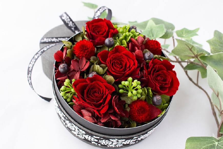 【ずっと鮮やか】プリザーブドフラワー ボックスアレンジ レ…