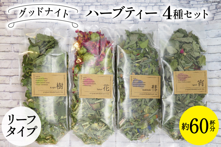 おやすみ前にハーブティーはいかが? グッドナイト ハーブティー 4種セット 約60杯分 リーフタイプ [ナチュラルマルシェ ソヨソヨ 長野県 池田町 48110740] アソート 飲み比べ セット 睡眠 リラックス ハーブティ