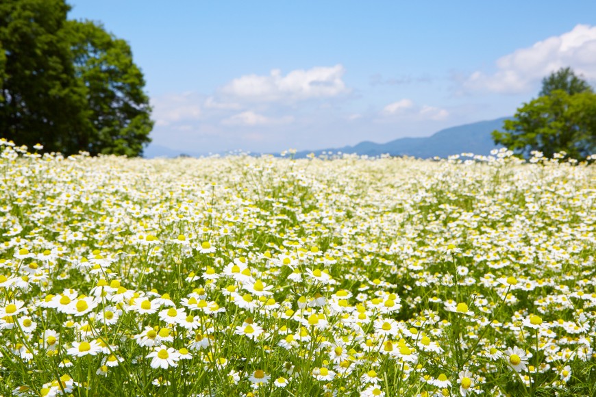 長野県北安曇郡池田町にある自社工場と有機カモミール農園が一面に広がる土地「カミツレの里」では、建材から料理まで自然素材にこだわった宿「八寿恵荘」を中心に、収穫体験や自然体験教室などさまざまなプログラムを行っております。カモミールのすべてを体感できるこの里で、自然とつながり、人とつながることにより、日頃のストレスから解放されて心身ともにリセットし、素の自分を取り戻していただけたら嬉しく思います。