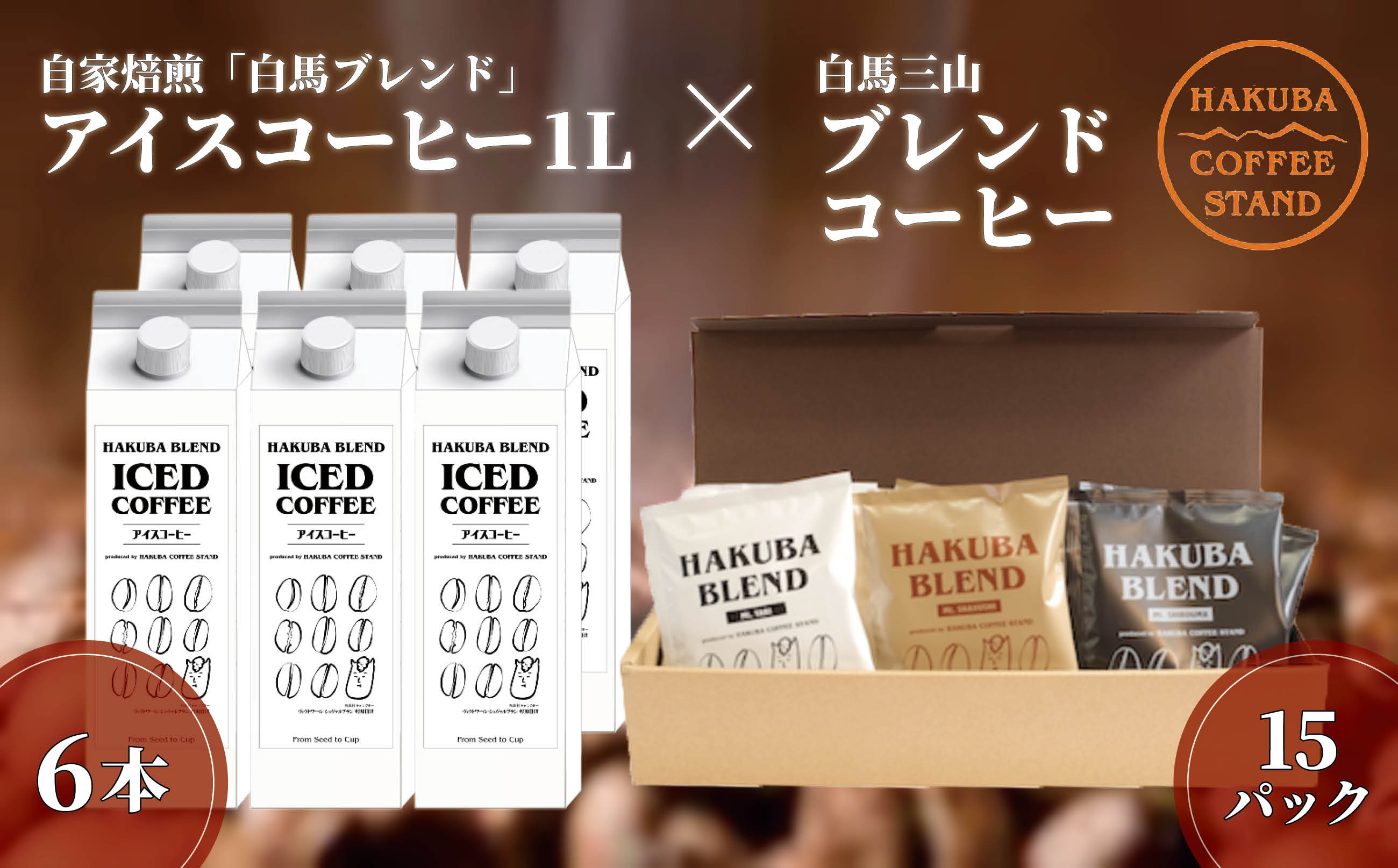“その一杯”に、白馬の物語を詰め込んで。贈り物にもぴったりなセットです。 自家焙煎「白馬ブレンド」アイスコーヒー1L×6本セット+白馬三山ブレンドコーヒーボックス 15パック/長野県白馬村 オリジナルブレンド スペシャリティ ストレート ティーバック 白馬三山 自家焙煎【F0450632-B】