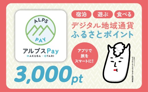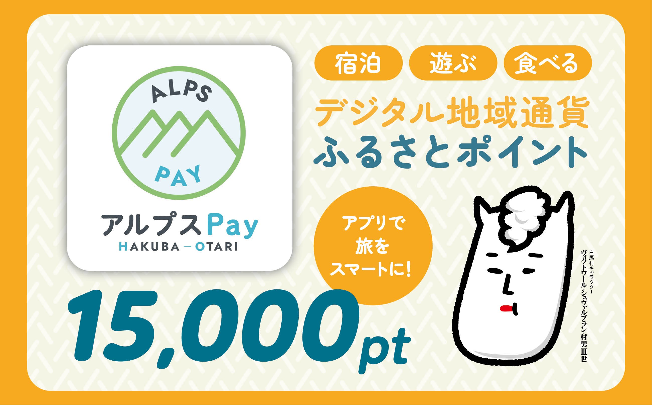 白馬村の旅をもっと自由に! 白馬村・小谷村 デジタル地域通貨「アルプスPay」 ふるさとポイント15,000pt(15,000円分) アルプスペイ 地域限定通貨 電子決済 キャッシュレス 飲食 宿泊 体験 電子通貨 長野県 北アルプス【L0020679】