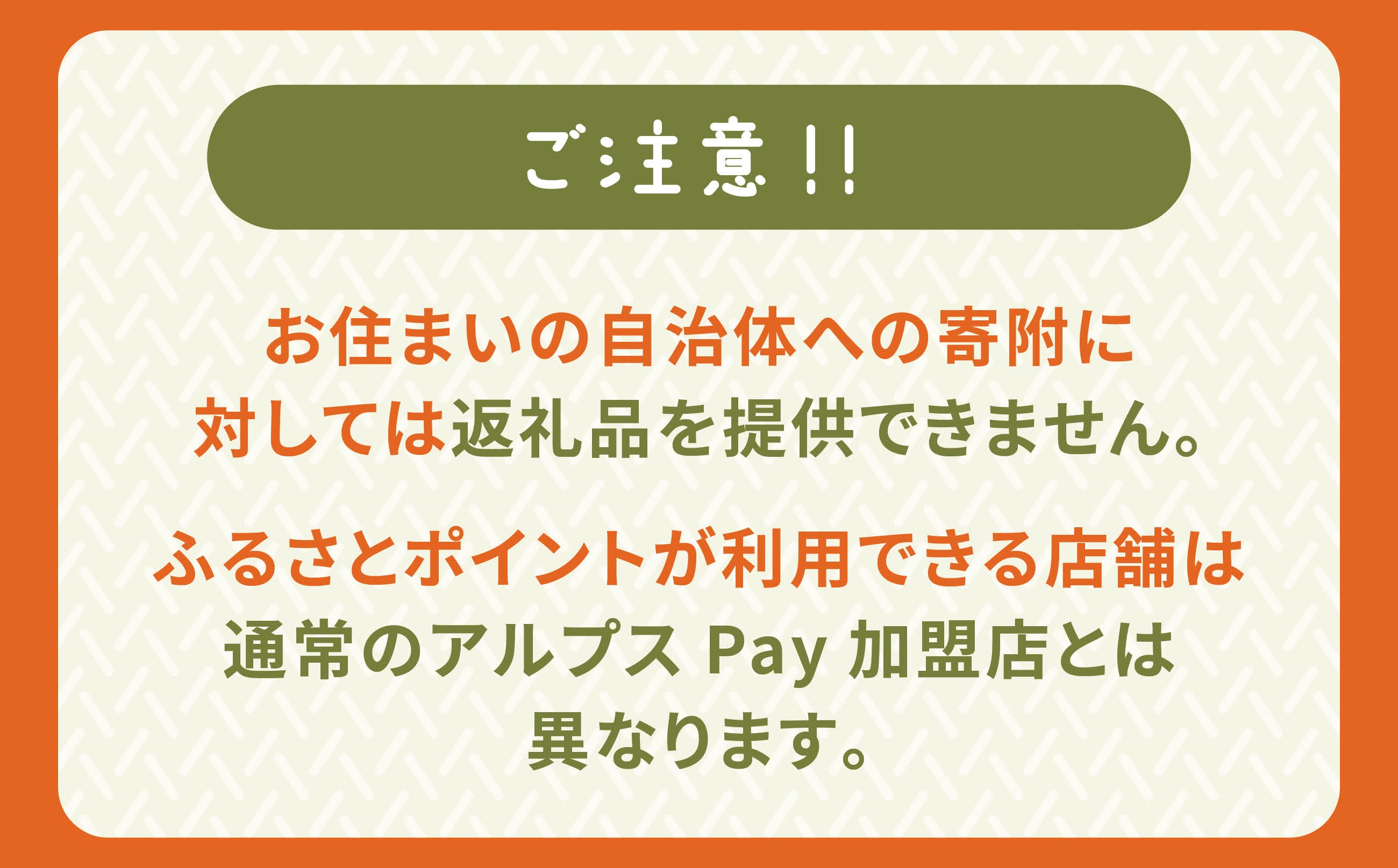 3) 付与されたポイントは、付与後すぐにアルプスPay加盟店のうち、ふるさとポイント対象店舗でご利用する事ができます。