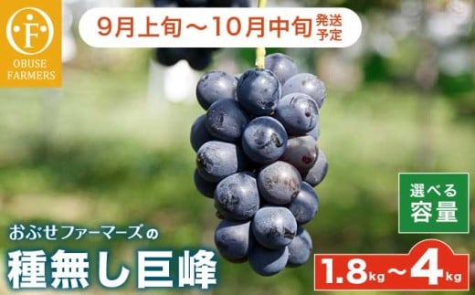 種無し巨峰 約1.8kg 3~5房 約4kg 8~10房 選べる内容量 [おぶ…