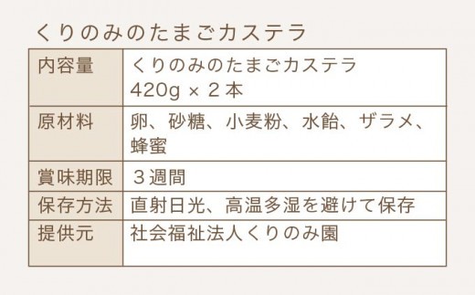 障がいを持つ人たちが手間を惜しまず製造した「くりのみのたまごカステラ」をご家庭でお楽しみください。