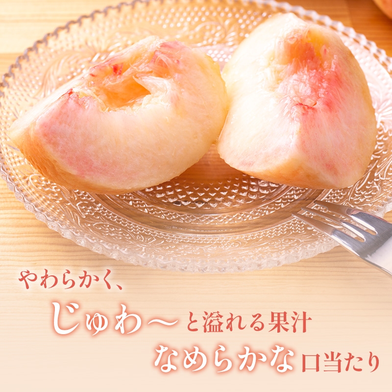 (食べごろのめやす)桃の香りが強くなり、へたの部分をそっと手で触り、柔らかくなってきたら食べごろの目安です。追熟が完了しましたら早めにお召し上がりください。