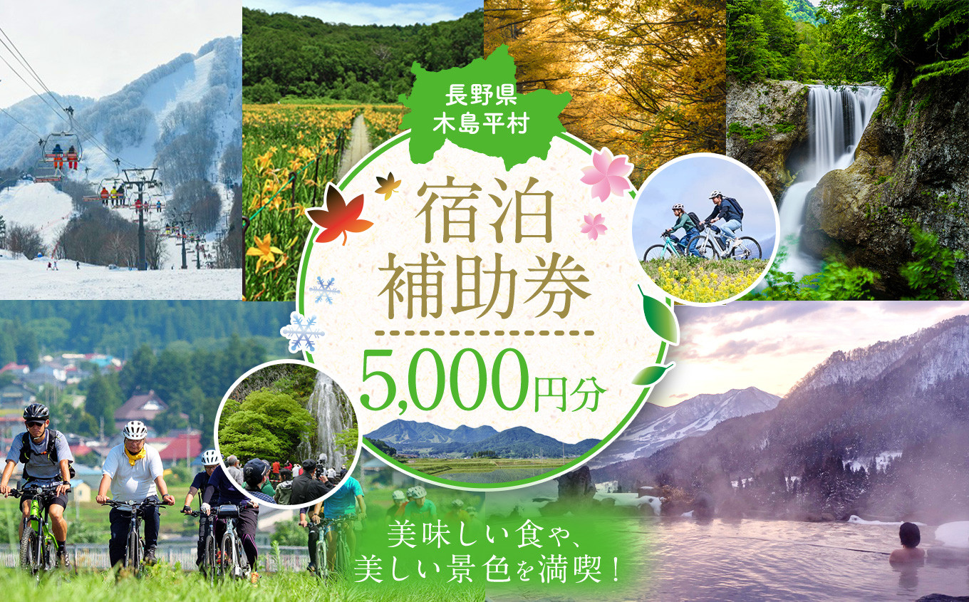 豊かな自然が育む美味しい食や、四季折々の美しい景色を満喫! 【宿泊補助券】【5,000円分】木島平村内の民宿・ペンション・ホテルで使用できる宿泊補助券