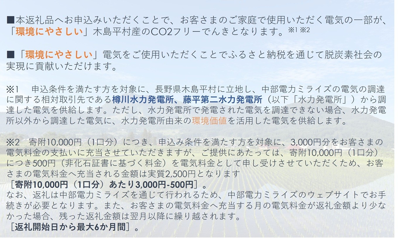 木島平村産CO2フリーでんき 木島平村産CO2フリーでんき 10,000 円コース(注:お申込み前に申込条件を必ずご確認ください) | 中部電力ミライズ 電気 長野県 木島平村