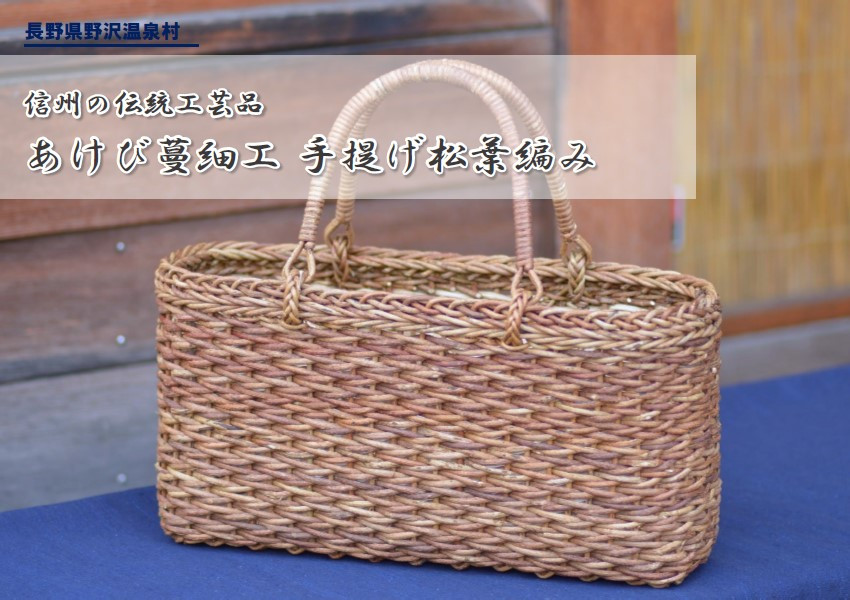 美しさと堅牢さを兼ね備えた、信州の伝統工芸品 あけび蔓細工 手提げ 松葉編み | D-2