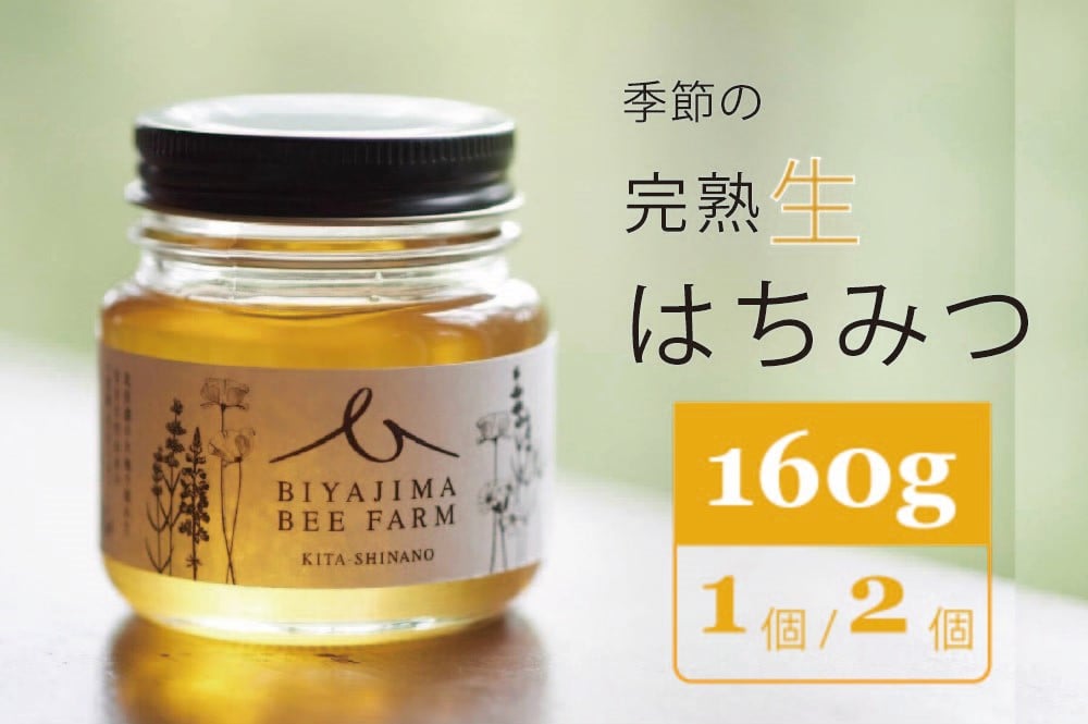 濃厚な甘さの完熟はちみつ BIYAJIMA BEE FARM『季節の完熟生はちみつ 一瓶160g(1個 / 2個)』北信濃の大自然がぎゅっとつまった、完全非加熱・無農薬の国産蜂蜜【長野県信濃町ふるさと納税】