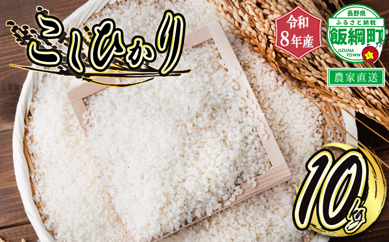 チョイス公式ポイント交換対象 美味しい空気と、キレイな水で育った長野県飯綱町産のコシヒカリです。 米 白米 こしひかり 10kg ( 令和8年産 ) ヤマハチ農園 2026年11月上旬頃から順次発送予定 コシヒカリ 白米 精米 お米 信州 予約 農家直送 長野県 飯綱町 [0846]