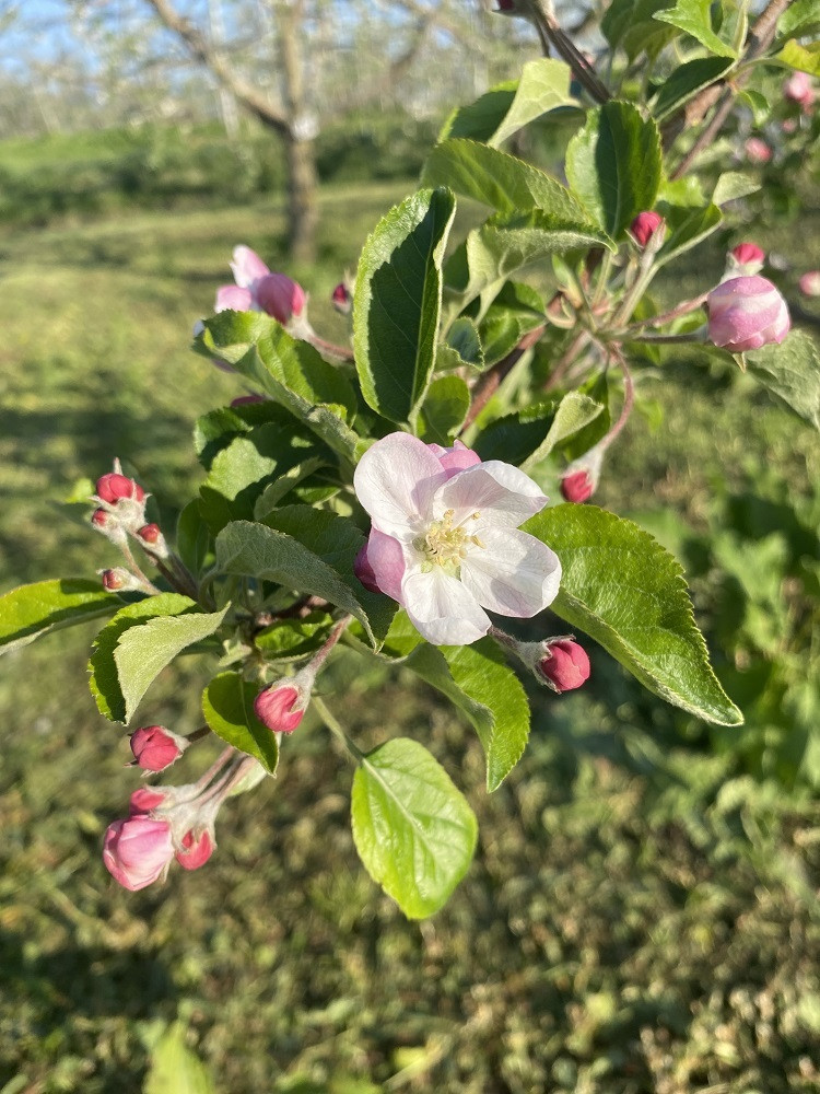 信州林檎の名産地・飯綱町三水のりんご畑で、その開花時期(5月上旬)に合わせて約3週間限定で採蜜しました。