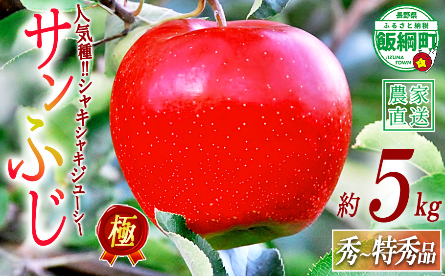 チョイス公式ポイント交換対象 極みサンふじは、りんご本来のフルーティーな味わいをお楽しみいただけます。 りんご 極み サンふじ 5kg こだわりの土作り 松澤農園 2026年11月下旬頃から2027年1月中旬頃まで順次発送予定 令和8年度収穫分 長野県 飯綱町 [1338]