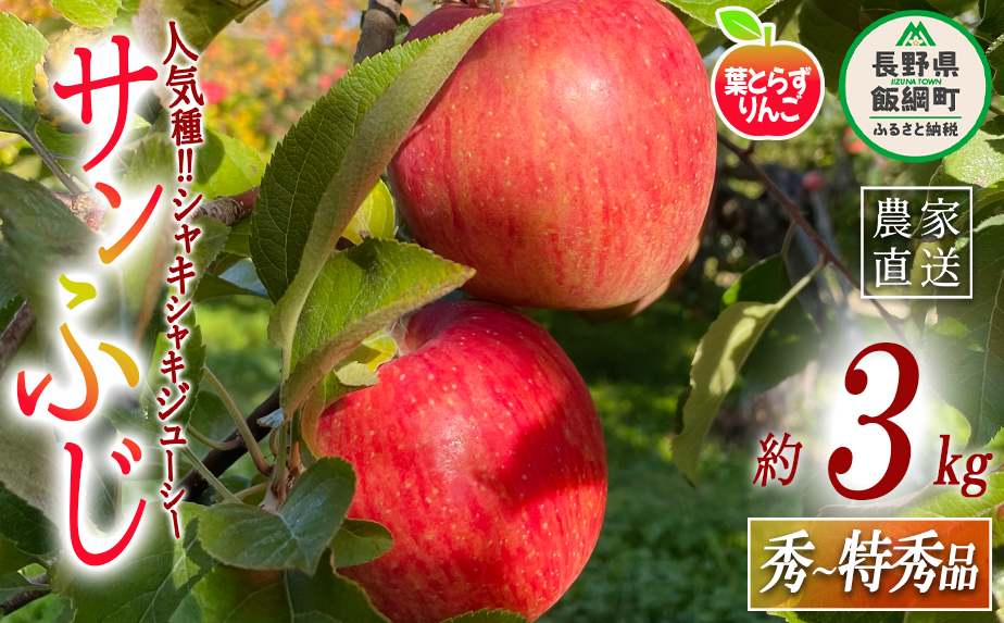 <葉とらずサンふじ 秀〜特秀 3kg>