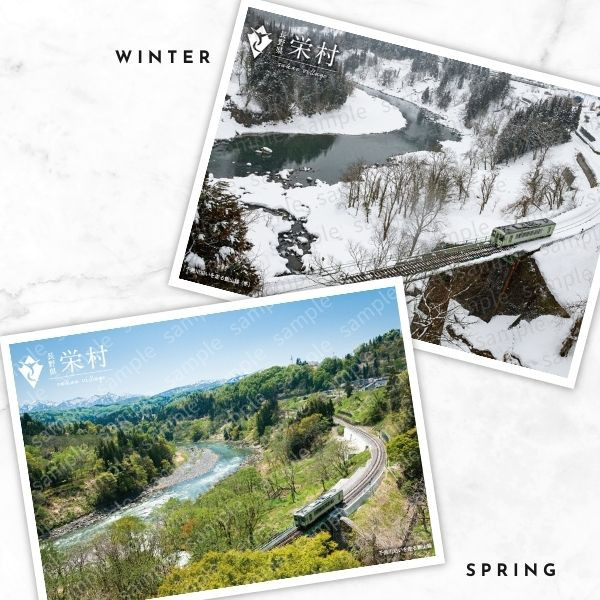 栄村出身のカメラマンが栄村の四季折々の自然や風景を撮影したものをポストカードにしたもので、栄村のロゴを印字し、栄村独自のものと一目でわかるため