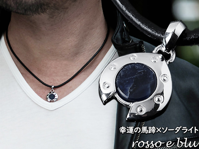 ロッソエブルー ネックレス メンズ シルバー 馬蹄 ソーダライト 革紐