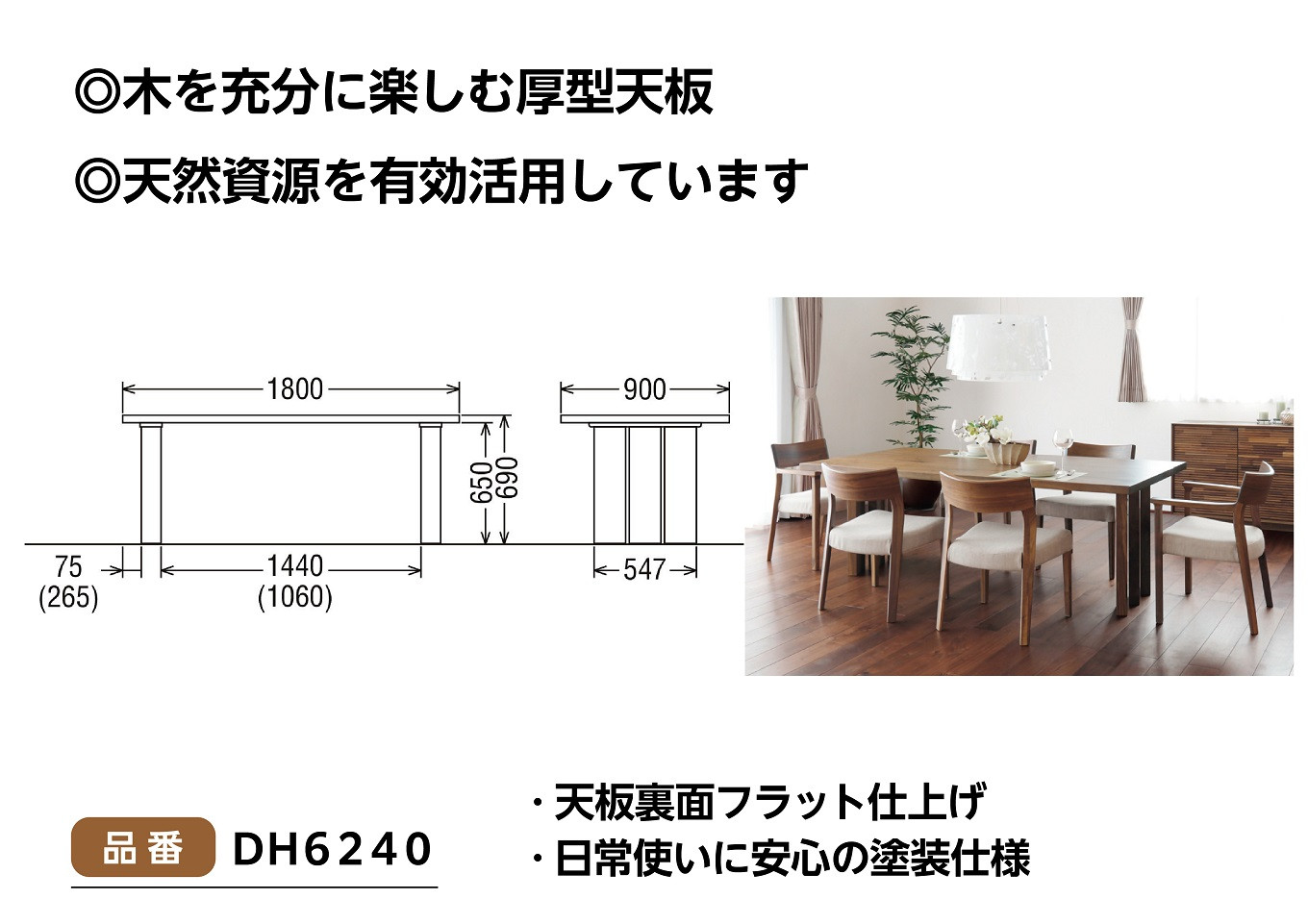 【高島屋選定品】カリモク家具「ダイニングテーブル(幅1800)」DH6240モデル