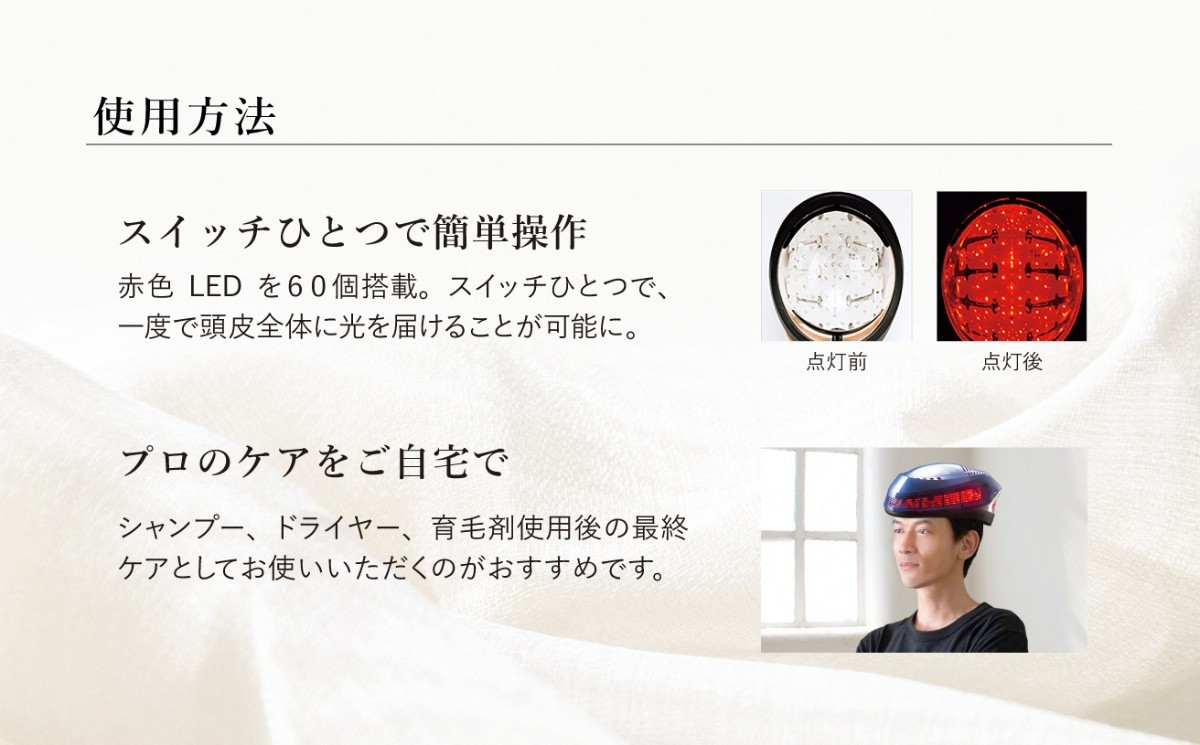 80個の赤色LEDを一斉に照射することで、短時間で広範囲への照射が可能。頭皮の悩みへアプローチ。