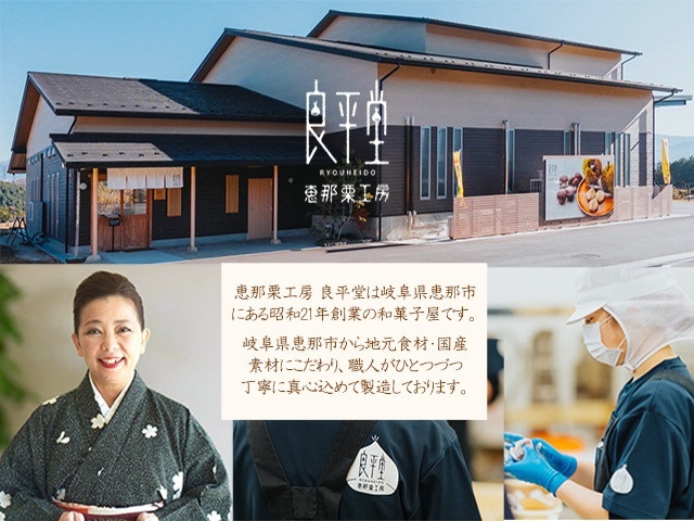 岐阜県恵那市にある老舗和菓子店「良平堂」は、創業以来、恵那の自然が育んだ上質な和栗を厳選し、素材本来の美味しさを大切にした和菓子づくりを続けてきました。熟練の職人が一つひとつ丁寧に手作りする栗菓子は、素朴ながらも奥深い味わいが特徴で、多くの方々にご愛顧いただいております。