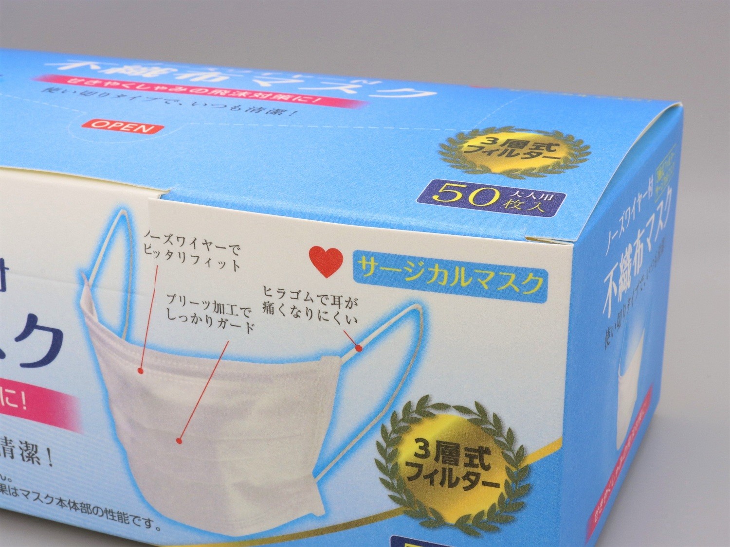 コロナ禍でマスクの着用が日常となる中、弊社企画部が考えた不織布マスクです