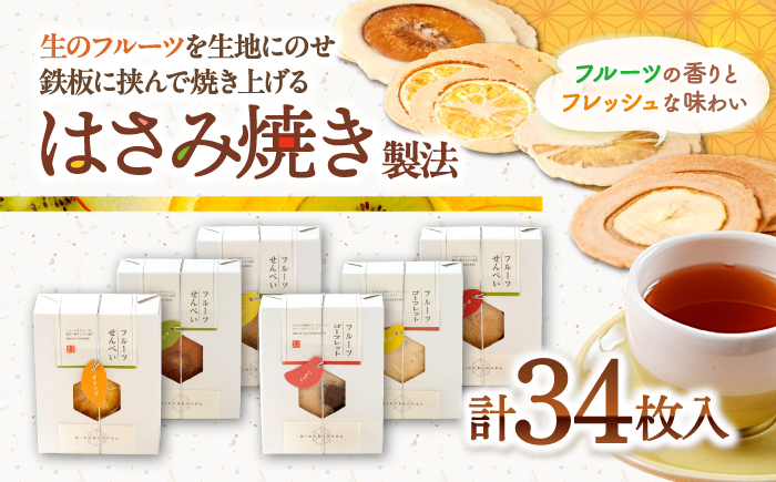 フルーツを練り込んだ生地に、新鮮なフルーツをスライスし、トッピングし香ばしく焼き上げたせんべいとゴーフレット6種の詰合せ。