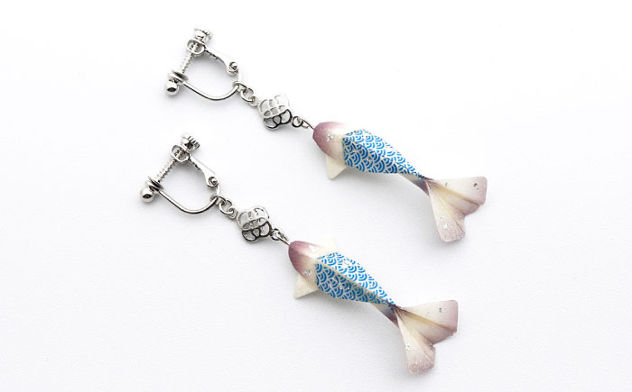 (E)Ko02-004 鯉 鱗青 イヤリング 美濃和紙 アクセサリー 真鍮 …