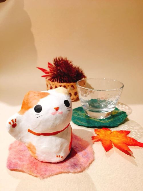 自然素材をつかった、素朴な風合いが魅力 ねこ玉ストラップ・ねこ張り子セット