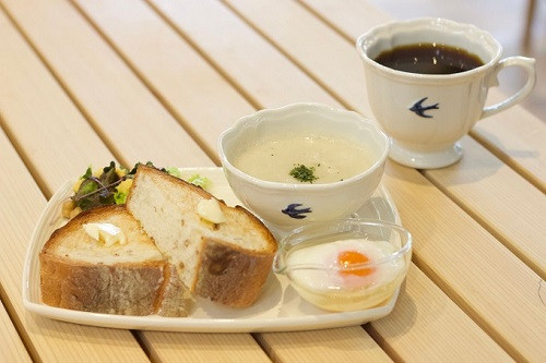 〇「カムスワモーニング」物繊維の多いライ麦パンや、自家製スープが人気のモーニング。嚥下調整食(飲み込みやすい形)への変更可。
