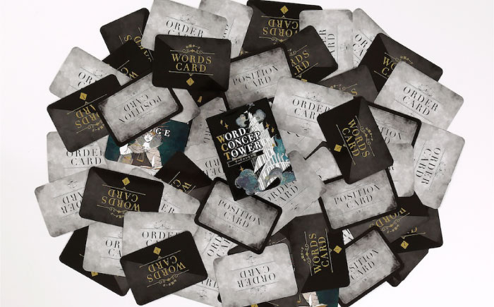 「ワードコンセプ塔」:隠されたカードに書かれた2つの言葉が何かを推理するワードゲームです。