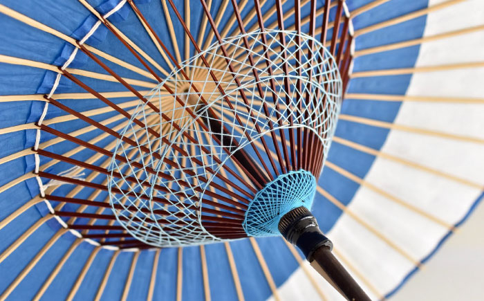 仐日和の和傘は特に細身で美しく、開いたときだけでなく閉じた時の佇まいも素敵と評判です。