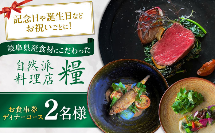 作り手の分かる岐阜県産食材にこだわる、身体に優しい自然派料理店 お食事券 ディナーコース 2名様 ディナー チケット 食事券 岐阜市 / 自然派料理店 糧 [ANGS003]