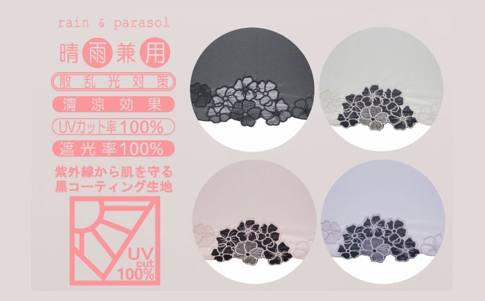 桜骨を使用した高機能な晴雨兼用傘です! UVカット率100% 遮光率100% 【選べるカラー】桜骨晴雨兼用傘 【デザイン:カットワーク刺繍】 傘 雨傘 日傘 岐阜市 / 小木曽産業株式会社 [ANJI001]