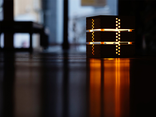 この四角形が灯りを灯した時に、美しい影を描きます。