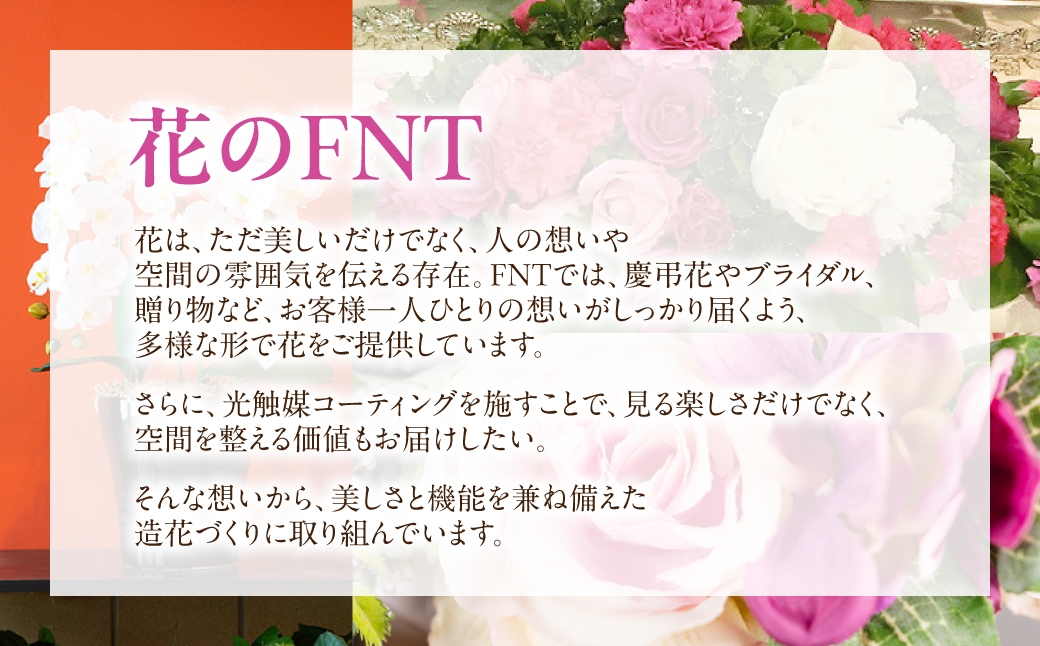 エフエヌティが提供する光触媒造花は、地域での技術と愛情を込めて作られています。