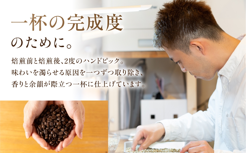 ご注文をいただいてから焙煎し、その日のうちに発送する「焙煎当日発送」を徹底しています。最高に新鮮で香り高い、本当に美味しいコーヒー豆をお届けするため、焙煎前の生豆選別から焙煎、焙煎後の豆の選別、パッケージングまで、すべての製造工程を大垣市内で一貫して実施。季節ごとに焙煎度を変える繊細な配慮で、日本の春夏秋冬を感じていただける味わいを追求しています。