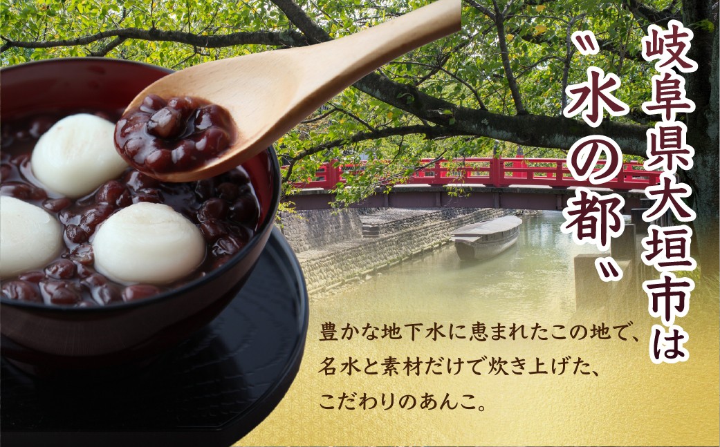 昭和23年創業の「松下製餡所」が「水の都」大垣の地下水を使用し、北海道産十勝小豆をじっくりコトコト炊き上げました。