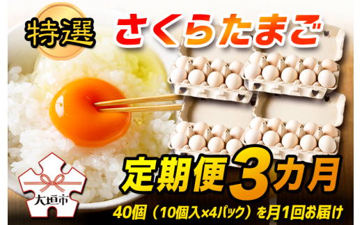 当日または前日にとれた新鮮たまごをお届けします! 【定期便 3カ月】 特選 さくらたまご☆40個(10個入×4パック)を月1回お届け 卵 玉子 大きい 松島飼料店 岐阜県 大垣市