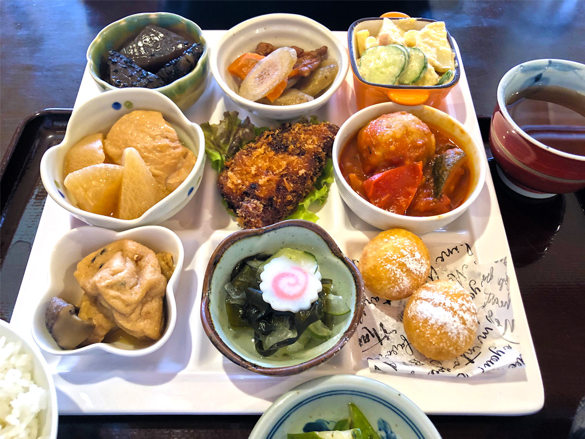 地元の食材を中心にしたメニューのランチを、大垣市上石津町多良地区にある「ひまわり畑」でおいしくいただく。