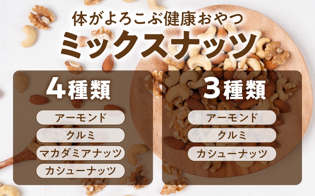 3種 /4種 ミックスナッツ 2kg (1kg×2袋) / 3.2kg (400g×8袋)【アーモンド・クルミ・カシューナッツ・マカダミアナッツ】