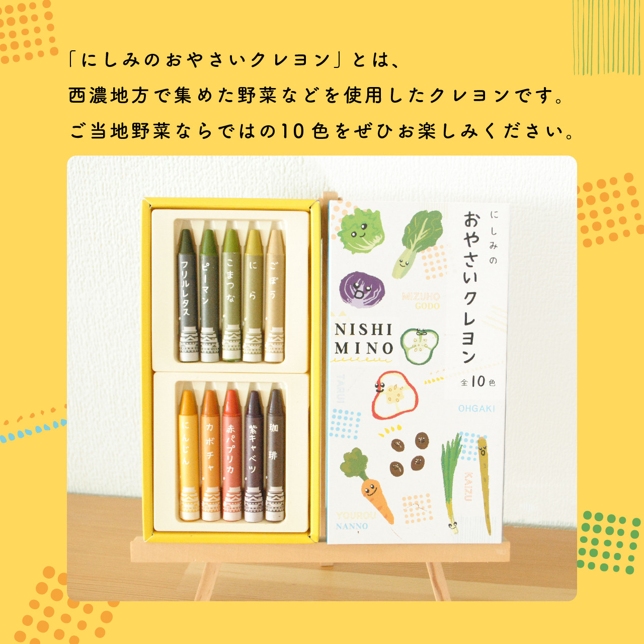「にしみの おやさいクレヨン」は西濃地方で集めた野菜などを使用しています。