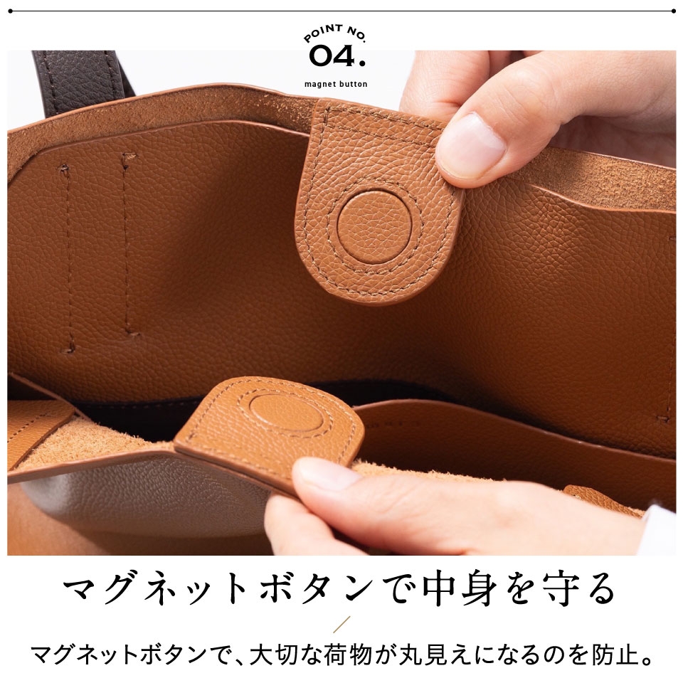 内ポケットや取り外し可能な底板など、使いやすさも考え抜かれた万能トートバッグです。