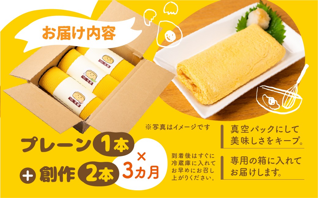 チョイスPayポイントと交換できる品 【定期便3ヶ月】だし巻き 玉子 プレーン 1本 創作だし巻き 2本 3回 卵 惣菜 だし巻き居酒屋 「美膳」 卵焼き たまご焼き おかず 岐阜県 大垣市