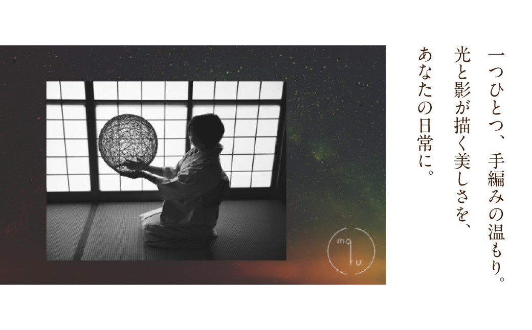 紙紐で丁寧に編み上げた丸いランプシェード「Ami no Akari~編みの灯~」。