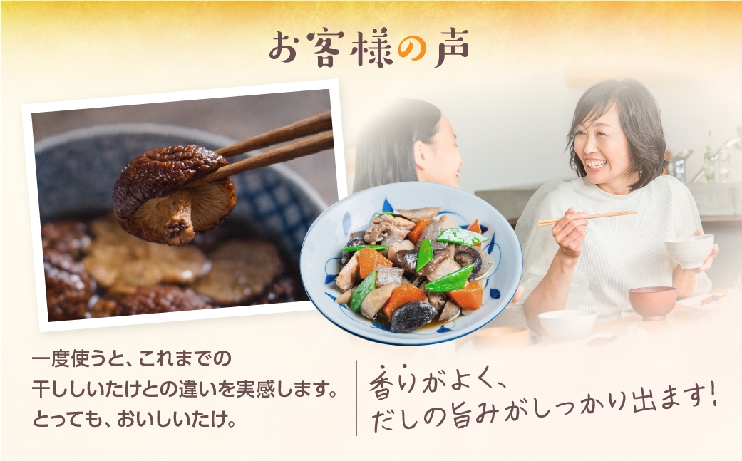 必要な分だけ戻せるため、常備しておきたい頼れる国産干ししいたけです。