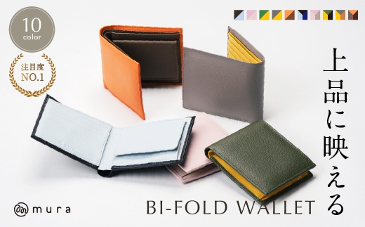 ≪選べるカラー≫MURA 両面本革 日本製スナップ 二つ折り財布 レ…