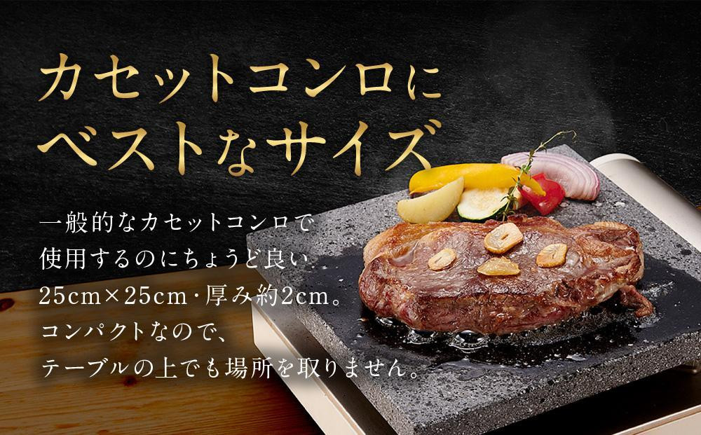 | 容量 | 飛騨溶岩プレート【楽】1枚 ・サイズ:25×25×2cm ・重さ: 2~3kg 取扱説明書 miniレシピ本 |