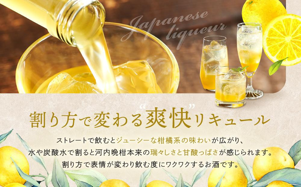 ストレートで飲むとジューシーな柑橘系の味わいが広がり、水や炭酸水で割ると、和製グレープフルーツとも称される河内晩柑本来の瑞々しさと甘酸っぱさが感じられるお酒に変わります。